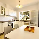 Denna lägenhet på 120 m^2 har te/kaffebryggare, satellit-TV och Wi-Fi i varje rum. Badkar och dusch finns här.
